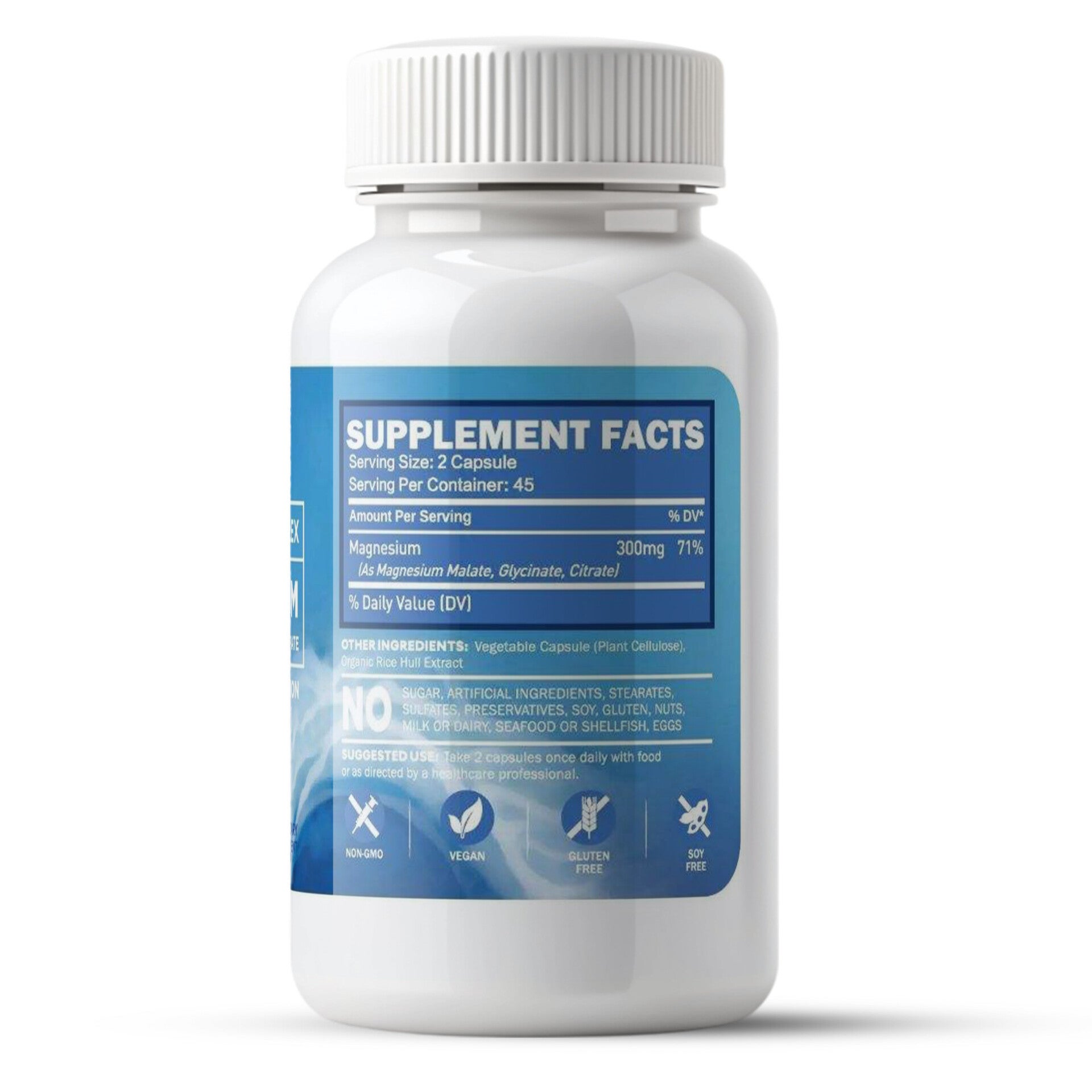 Triple Magnesium Complex offers a premium blend of three highly effective forms of magnesium—Magnesium Glycinate, Magnesium Malate,