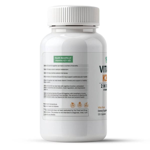 - Ingredients: Vitamin K2 (MK7), Vitamin D3